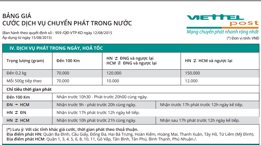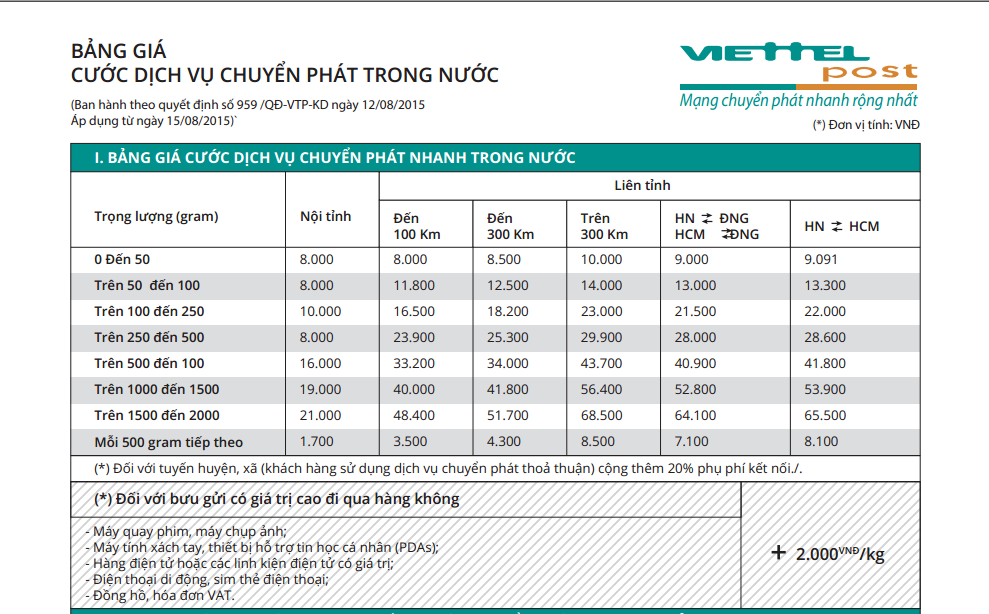 Cước phí vận chuyển chúng tôi tạm tính theo bảng cước phí của chuyển phát nhanh Viettelpost (cước phí có thể sẽ thay đổi tùy thời điểm)
